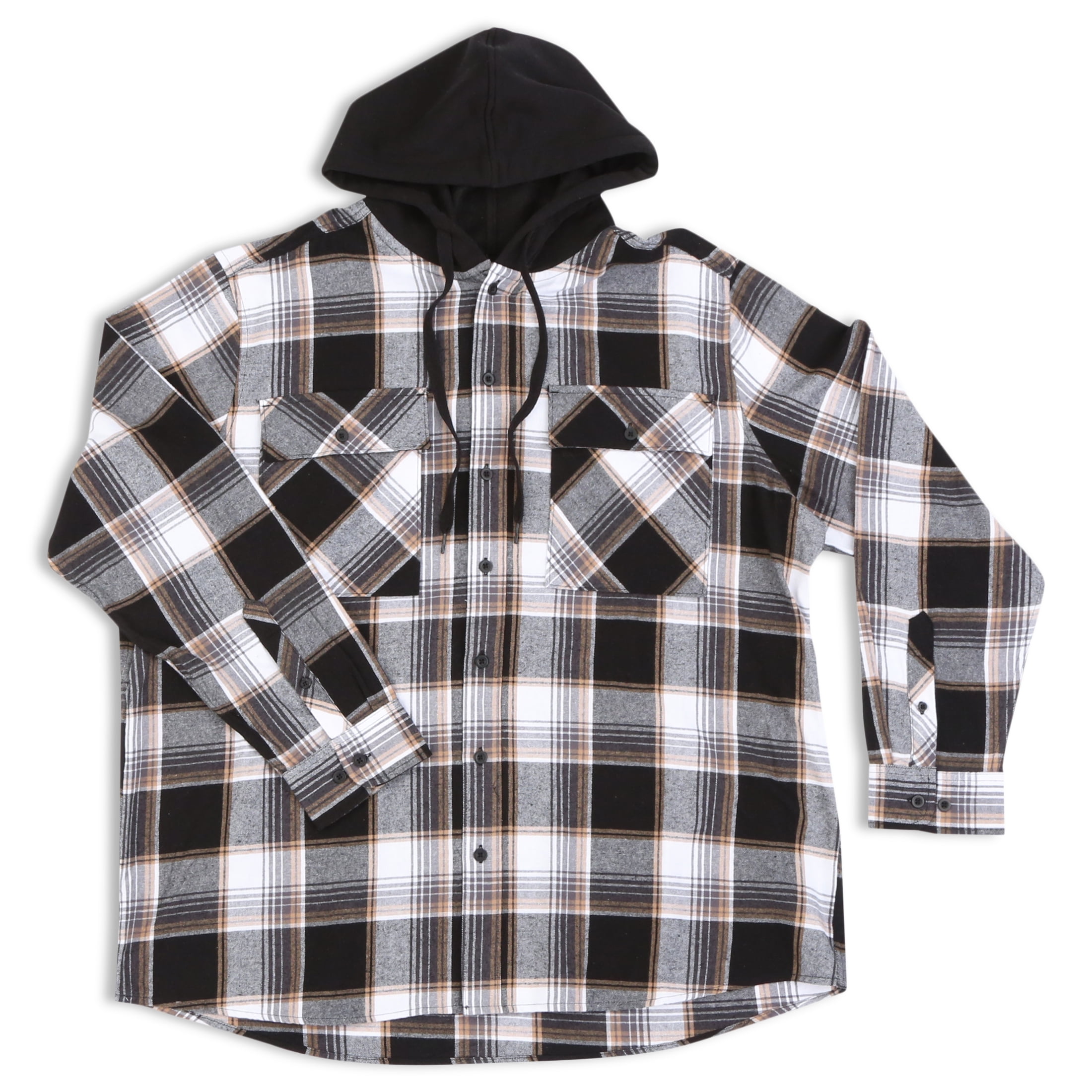No Boundaries Men S And Big Men S Long Sleeve Hooded Flannel Shirt Up To Size 5xl Walmart Com