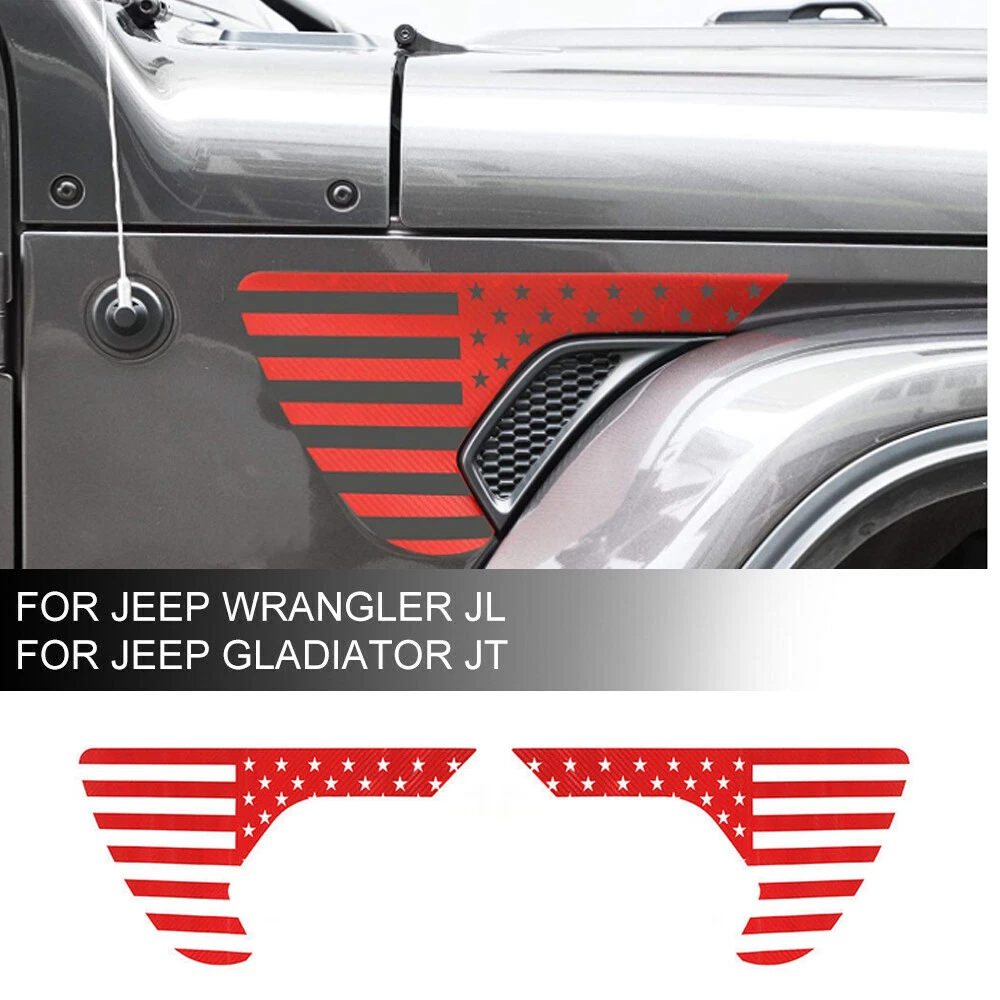 For Jeep Wrangler Jl Jt 2018 Fender Vent American Flag Decal Sticker Red Carbon Ebay